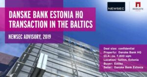 According to Andrius Švolka, Head of Transactions in the Baltics at Newsec, this is the second successful transaction advised jointly by Newsec and Redgate Capital in Tallinn this year. “We are happy to have sold this property to a local investor who has an idea how to rejuvenate and bring the property back to life after Danske bank exits the market. We are also pleased to have worked jointly with Redgate Capital on the second successful deal this year,” Švolka notes.